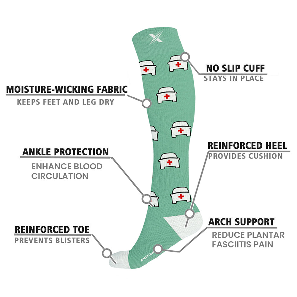 • Includes three (3) pairs of Medical-Inspired Knee-High Compression Socks in size and design of your choice (refer to the Designs section below for a breakdown of each)