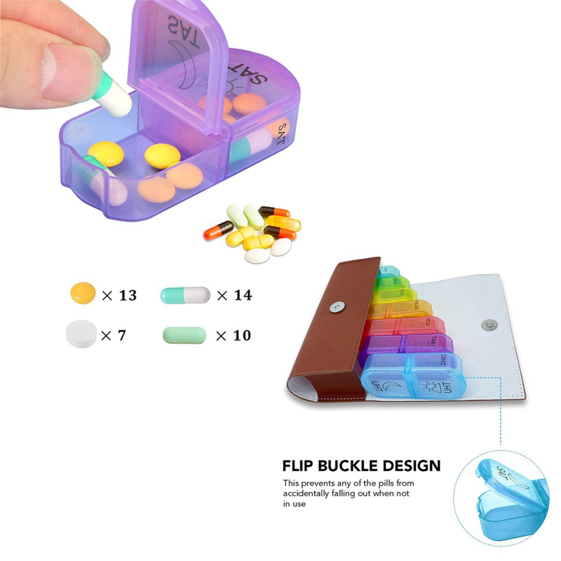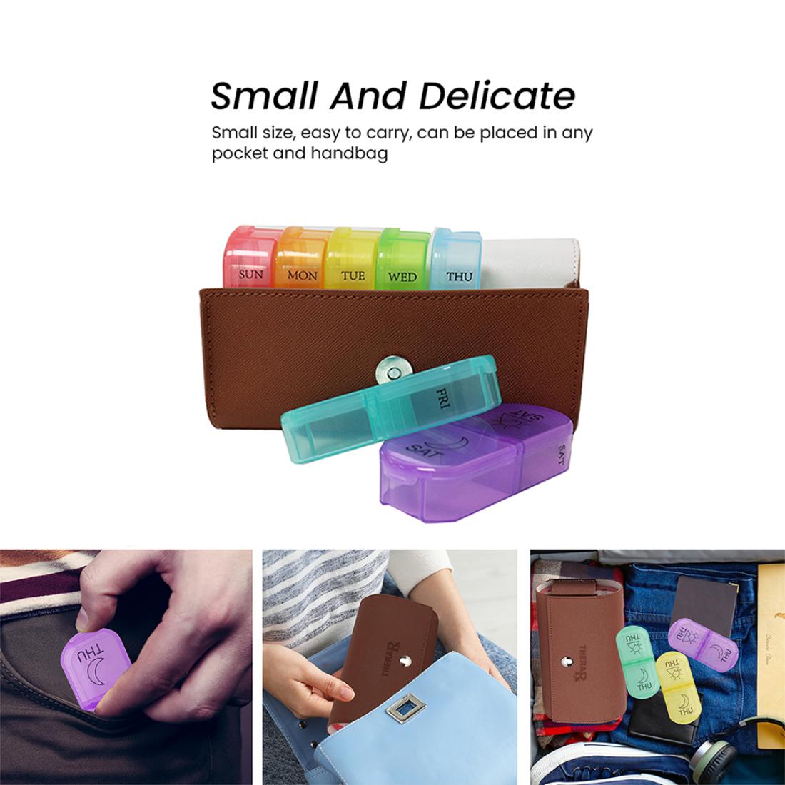 This optimally sized reminder pill box helps organize your daily medications for the whole week into morning and evening/night slots. This is especially useful while traveling, when routines are often disturbed. Even as a daily routine, it’s convenient to refill the box once a week for easy dose administration.