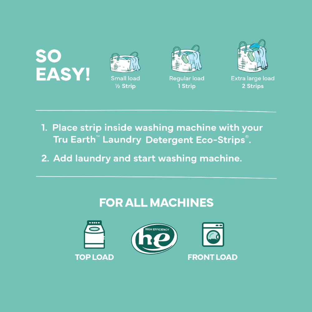 - Place strip inside washing machine with your Laundry Detergent Strip (sold separately)