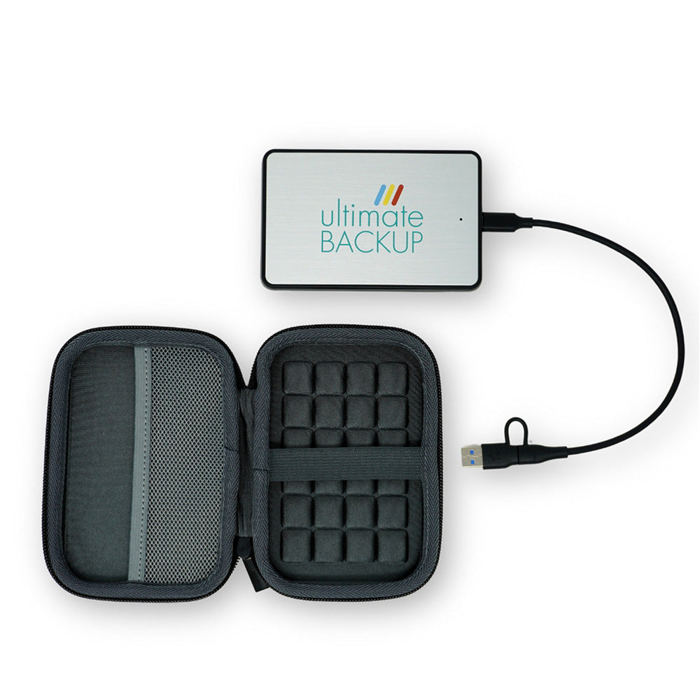 On the go? Like to travel? Take your Ultimate Backup SSD anywhere with you in this durable, hard-shelled case.