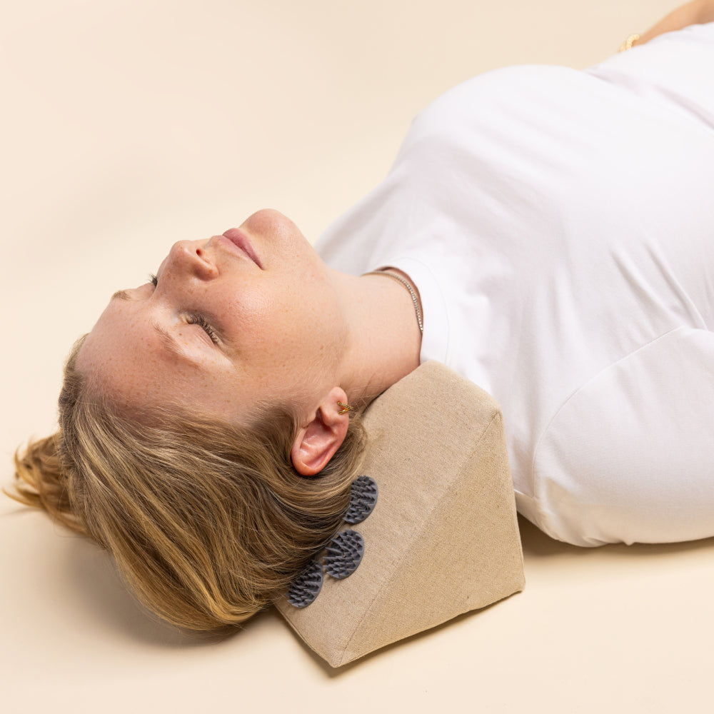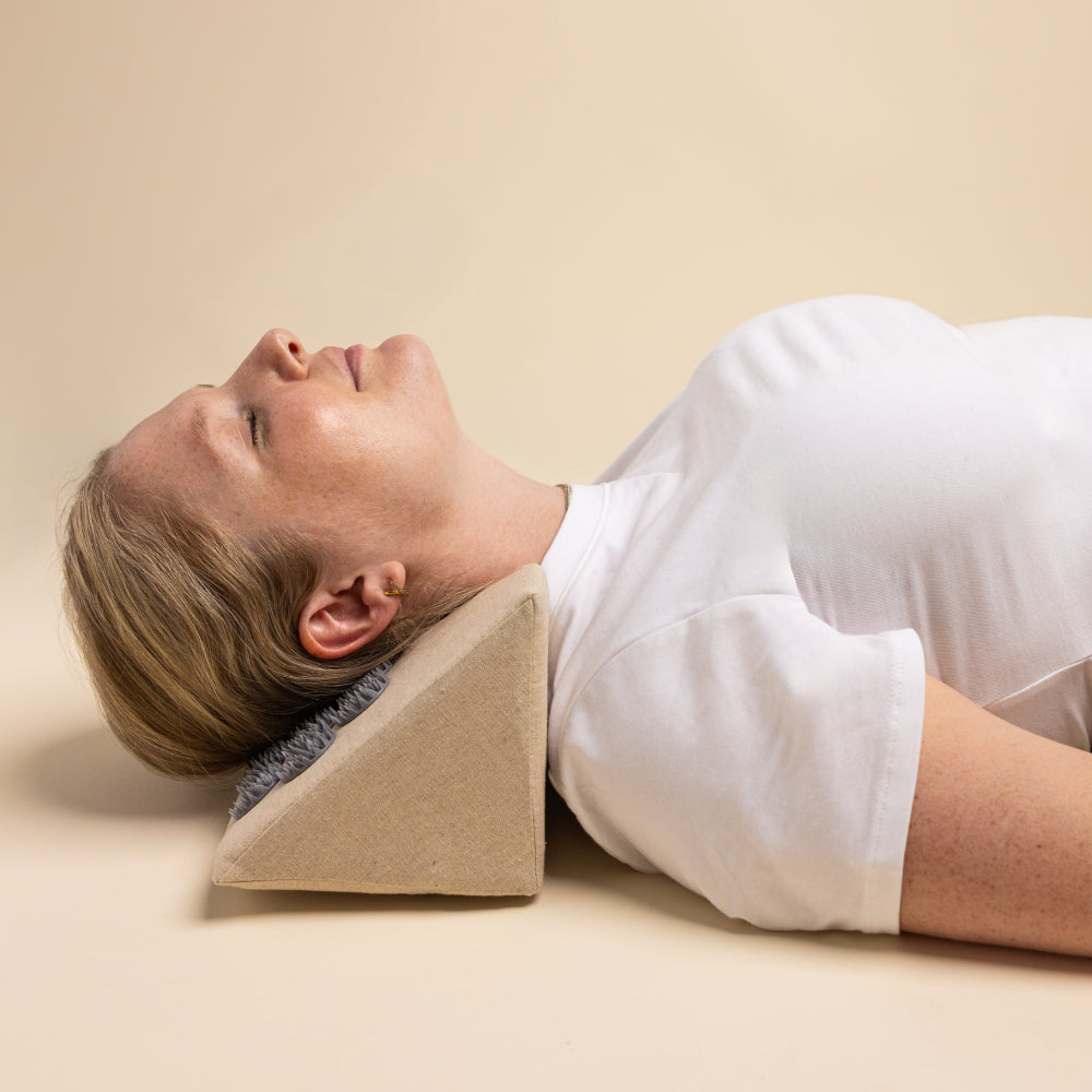 The Acupressure Neck Wedge offers quick and effective relief for neck and head tension. Based on the principles of Traditional Chinese Medicine, the wedge helps activate acupressure points to promote circulation and healthy range of motion. The Wedge also provides cervical extension, keeping the head aligned with the spine to alleviate tension in the neck and back. Say goodbye to “tech-neck” and other sources of discomfort.