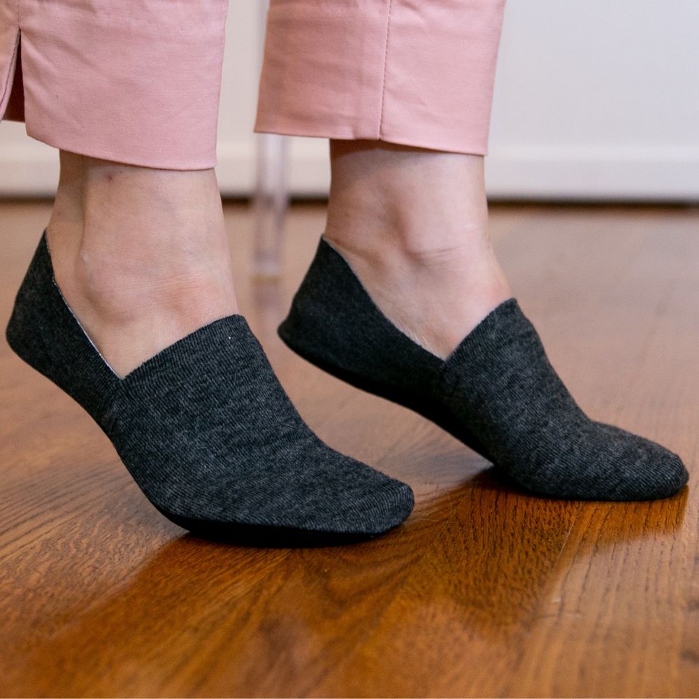 Feel the ultimate comfort of a cushioned bottom slipper sock combined with an ultra-thin upper that allows you to go from lounging to shoes in a snap! These socks feature an anti-skid bottom, extra-wide heel grip, and 360° comfort band. Put your feet up in style and experience superior comfort with a fashionable, no-show design.