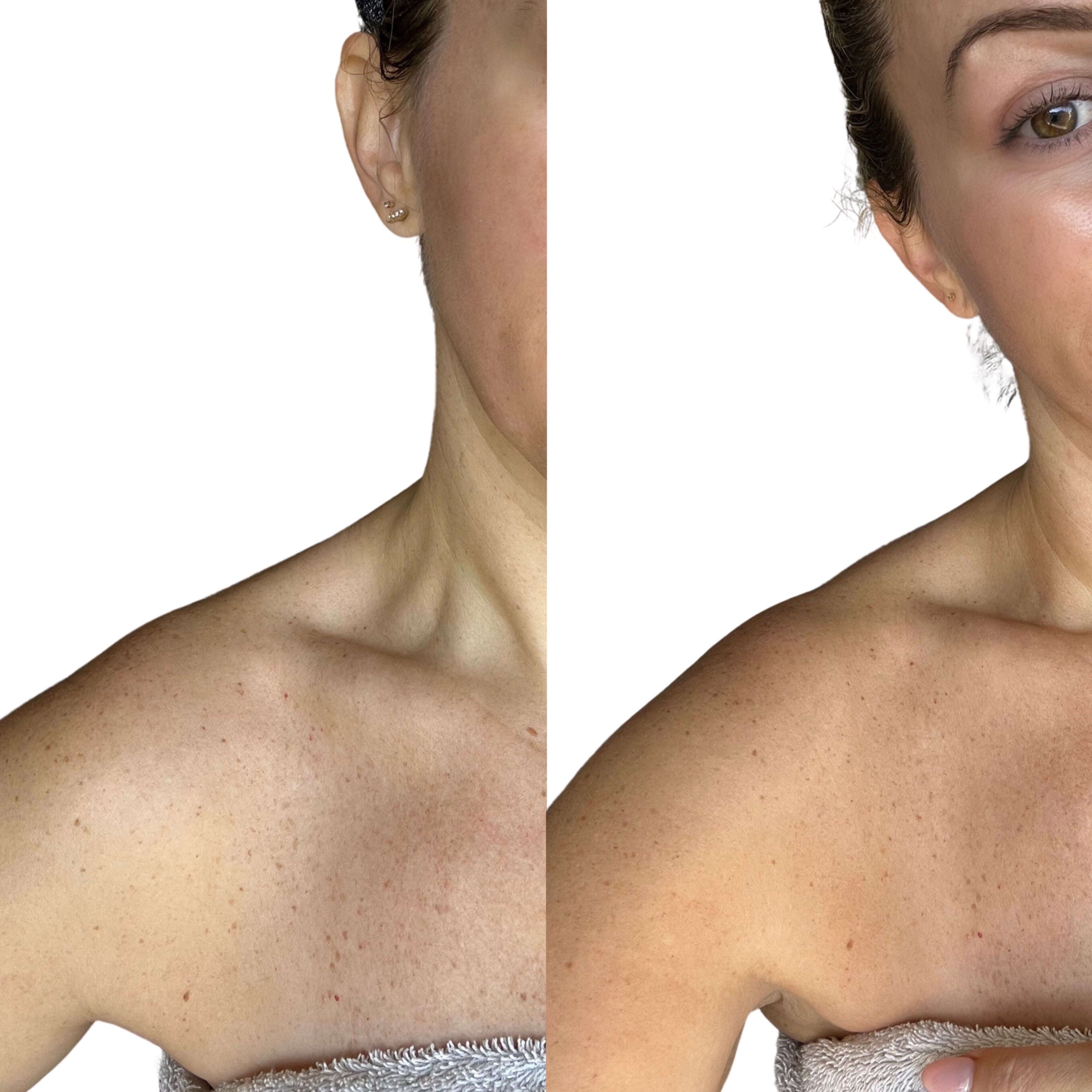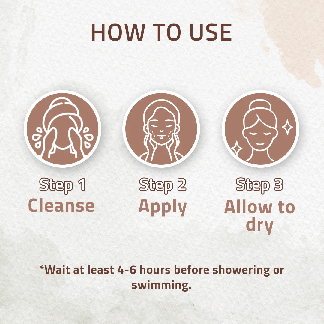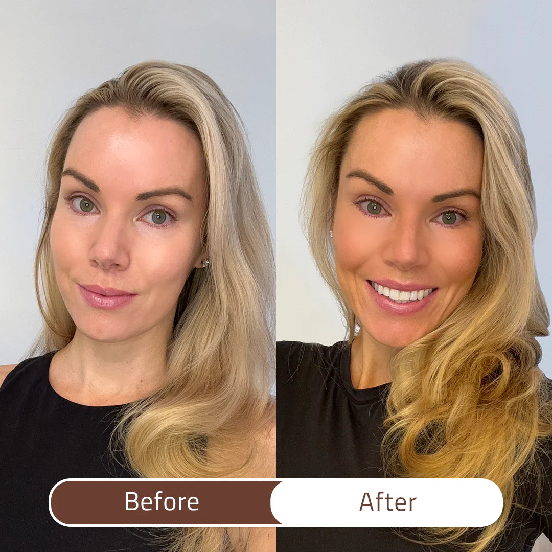 - Apply an even layer of Self-Tanning Lotion all over your face and body in circular motions to blend into skin
