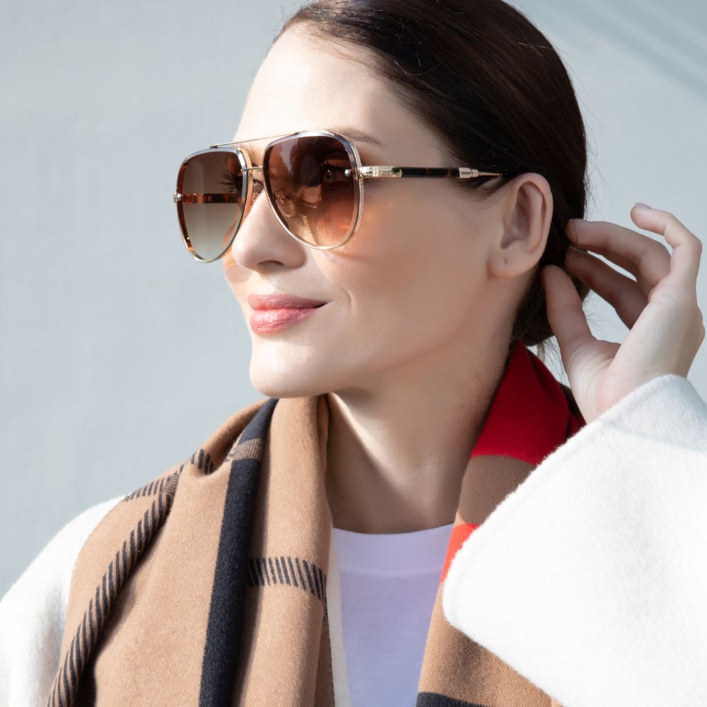 Elevate your style with these classic aviator sunglasses, where bold design meets refined sophistication. Featuring sleek lenses framed in a polished gold-tone metal, these shades are the ultimate blend of luxury and attitude. The double bridge adds a touch of vintage flair, while the slim arms ensure a comfortable, secure fit. Whether you're cruising the coast or commanding attention in the city, these sunglasses are your ideal companion for every sunlit adventure.
